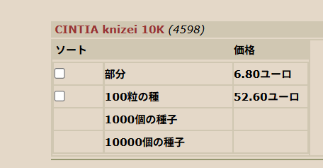 とりあえず最初は日本への出荷実績も多い有名な種のお店のKoehres(ケーレス)さんから仕入れることにいたしました。